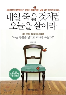 이러한 예들을 많이 보면서 저자는 ‘죽음을 잘 준비해야 삶을 잘 살 수 있다’는 깨달음을 얻게 되었다. 이 책은 저자의 전문분야인 유산상속은 물론 나아가 삶과 죽음에 대해서, 후회 않지 않는 삶에 대해서 법조인의 관점에서 살펴본다. 변호사로서 다양한 고객들을 상대한 숱한 경험을 통해, 후회 없는 인생과 아름다운 마무리가 무엇인지 통찰력 있게 제시하고 있다.